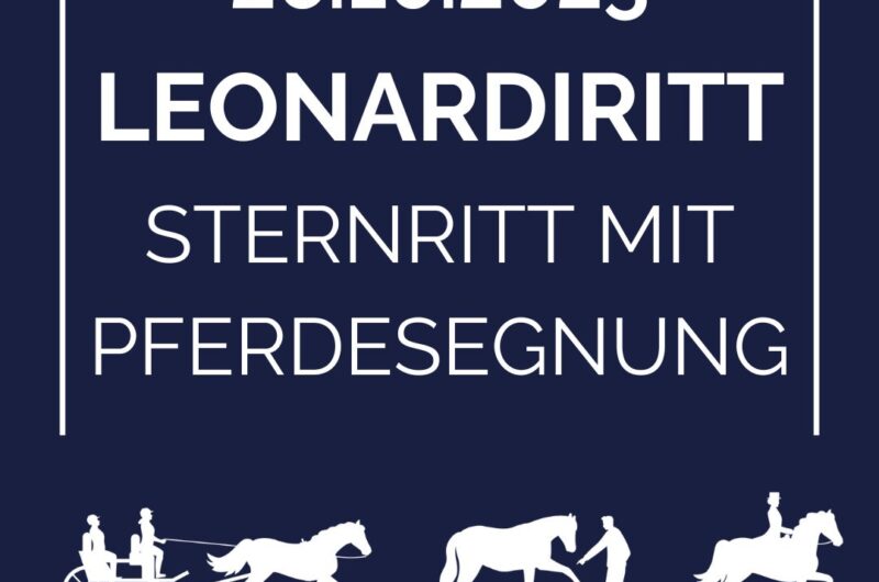 Einladung zum Leonardiritt Liebe Pferdefreundinnen und Pferdefreunde, wir lassen eine schöne Tradition wieder aufleben und laden euch herzlich zu unserem Leonardiritt am Sonntag, den 26. …